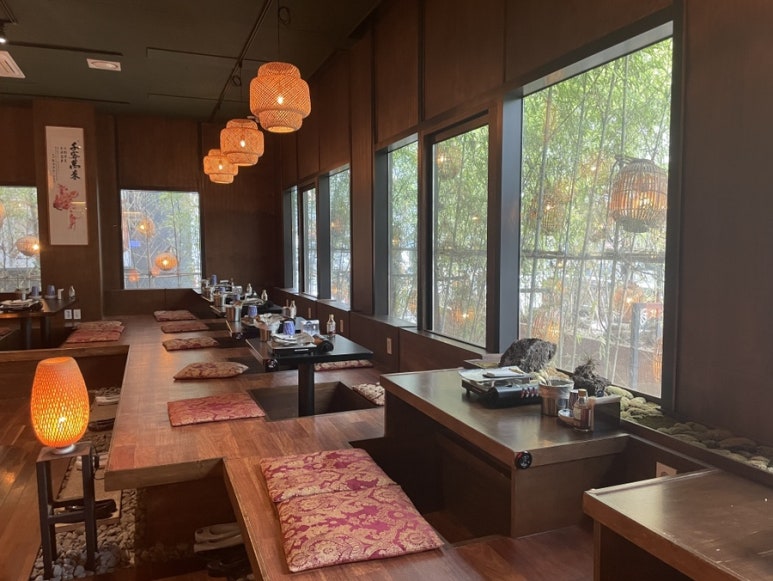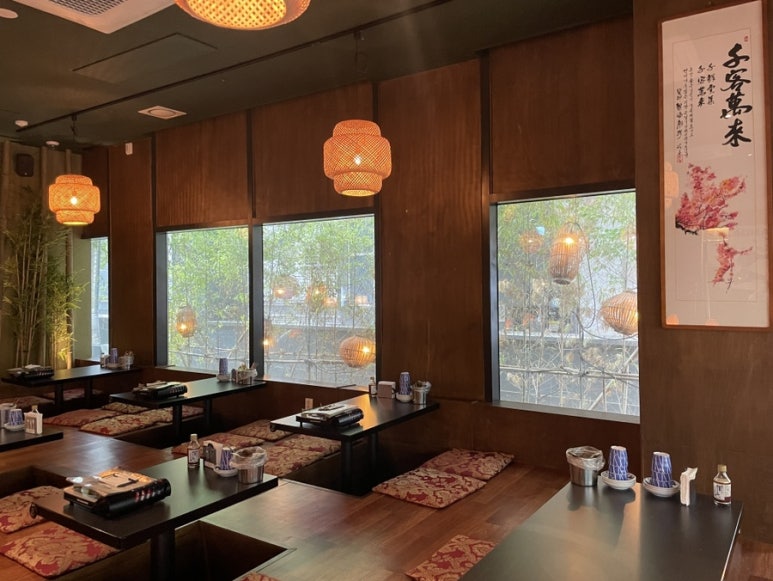 가게 안으로 들어서면 은은한 주황색 조명이 눈에 들어옵니다. 천장이 높아 답답함 없이 편안한 분위기를 느낄 수 있었고, 유명인사들이 다녀간 흔적들도 볼 수 있어 더욱 흥미로웠습니다. 좌석은 다리를 편하게 넣을 수 있는 구조로 되어 있어 편안하게 앉아 있을 수 있었습니다.