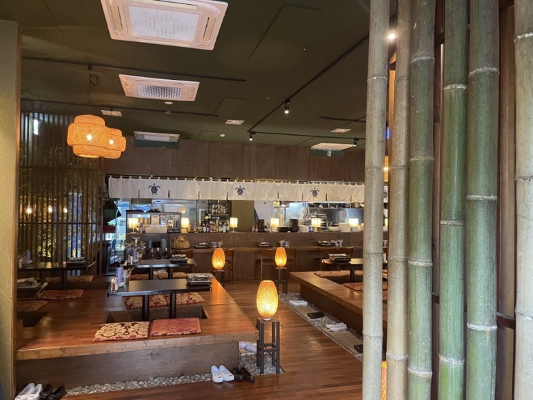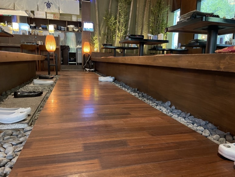 구주 마곡에서는 직접 손님이 바텐더가 되어 하이볼을 만드는 재미있는 요소도 있어 더욱 즐거운 시간을 보낼 수 있었습니다. 또한, 일본 온천에 온 듯한 독특한 느낌의 인테리어와 고무신 같은 귀여운 디테일들이 인상적이었습니다. 특히 화장실 갈 때 신을 수 있는 귀여운 고무신이 있어 편리함과 재미를 동시에 느낄 수 있었습니다.