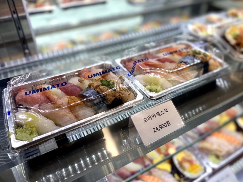 우미마토의 오마카세 코스는 35,000원으로, 매우 합리적인 가격에 고품질의 요리를 제공합니다. 이 가격에 스시, 사시미, 소바, 생선 조림, 카이센동, 모찌리도후 등 다양한 메뉴가 포함되어 있습니다. 스시는 신선한 재료를 사용하여 맛과 식감이 뛰어나며, 각 스시는 두툼한 회와 적절한 밥 양으로 구성되어 있습니다.