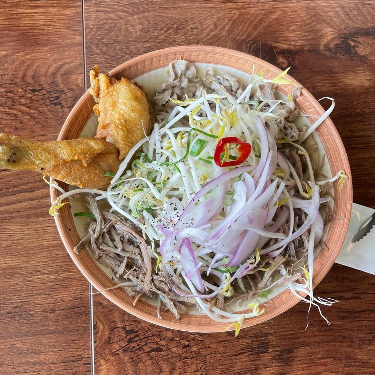 먼저, 아래 사진은 카오반타이의 대표적인 요리들입니다. 쌀국수는 물론, 바삭한 튀김 요리들까지, 모든 메뉴가 깔끔하게 잘 나와요! 국물 위에 올려진 신선한 채소와 고기가 정말 먹음직스럽죠?