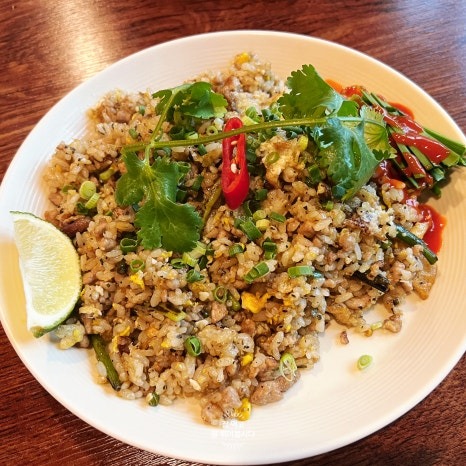 카오팟 쌉파롯(볶음밥): 향긋한 바질과 함께 볶아낸 태국식 볶음밥으로, 한 끼 식사로 매우 만족스러운 메뉴입니다.