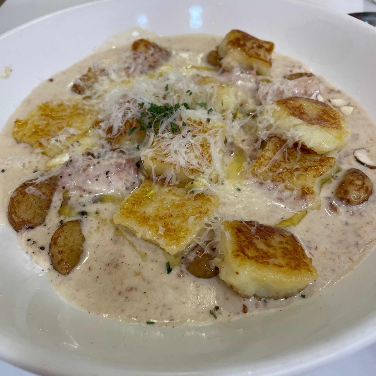 감자 뇨끼는 신선한 감자로 매일 반죽하여 만들어지며, 쫄깃하면서도 부드러운 식감이 일품입니다. 베이컨 크림소스와의 조화는 고소하면서도 깊은 맛을 선사하며, 통마늘과 치즈가 더해져 맛의 완성도를 높입니다. 이 뇨끼는 꾸덕한 식감을 좋아하는 사람들과 부드러운 식감을 선호하는 사람들 모두에게 사랑받는 메뉴입니다.