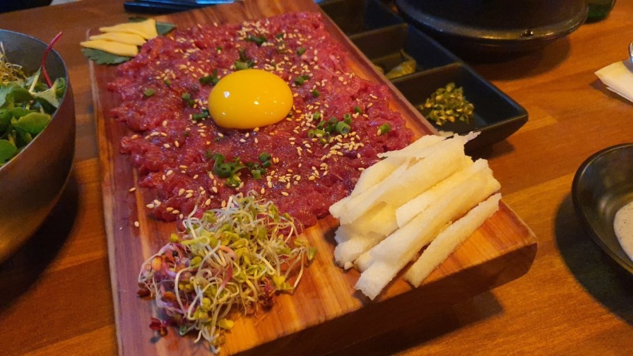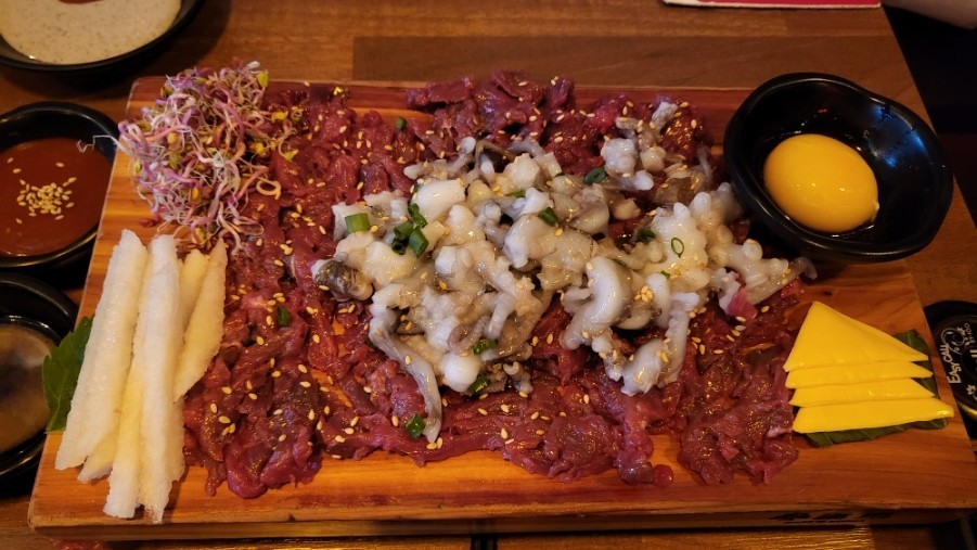 유케야 신도림점은 신선한 한우 육회를 매일 손질하여 제공하는 것이 특징입니다. 기본 육회 외에도 육회비빔밥, 산낙지와의 조합 등 다양한 메뉴가 준비되어 있습니다. 특히 육회와 잘 어울리는 소스와 함께 제공되는 계란노른자는 육회의 고소함을 한층 더해줍니다. 치즈와 깻잎을 곁들여 먹는 독특한 방식도 이곳만의 매력입니다.