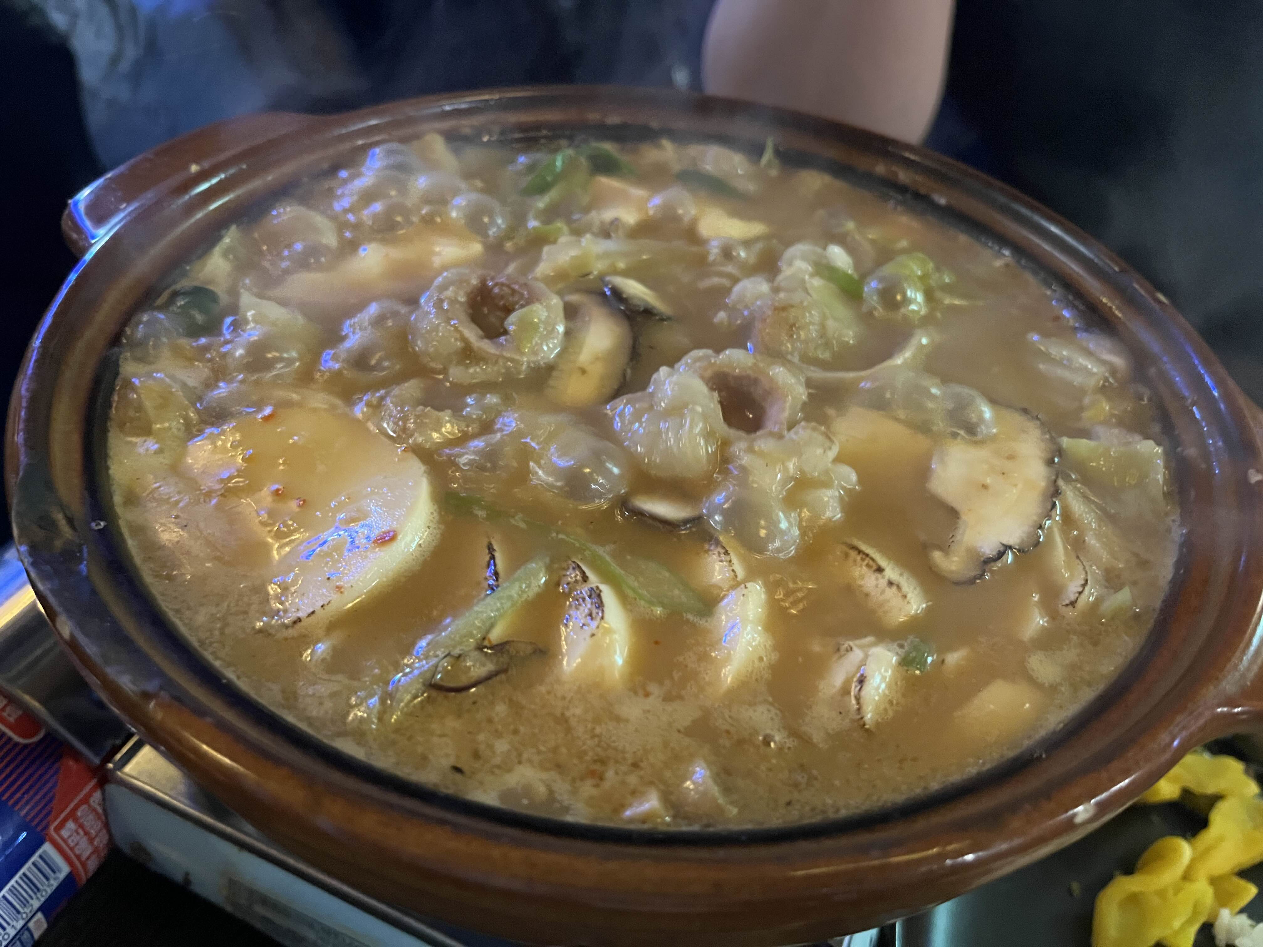 모츠나베는 일본식 곱창전골로, 다양한 재료들이 어우러져 깊고 진한 국물 맛을 자랑합니다. 곱창, 순두부, 버섯, 고추 등이 듬뿍 들어가 있으며, 특히 곱창의 고소한 맛이 국물에 스며들어 한층 더 맛을 끌어올립니다. 모츠나베는 따뜻하게 유지되도록 버너에 올려져 제공되며, 추운 날씨에 먹기 좋은 메뉴로 추천합니다. 이 메뉴는 소주와 함께하면 더욱 좋습니다.