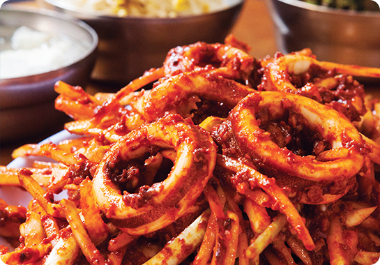 반찬으로는 콩나물, 동치미, 상추가 나와 매운맛을 중화시켜 줍니다. 특히, 오징어 순대는 오징어 속에 순대가 가득 차 있어 식감도 좋고, 안주로도 훌륭했습니다. 기름에 노릇노릇하게 구워져 나와 맛이 일품이었습니다.