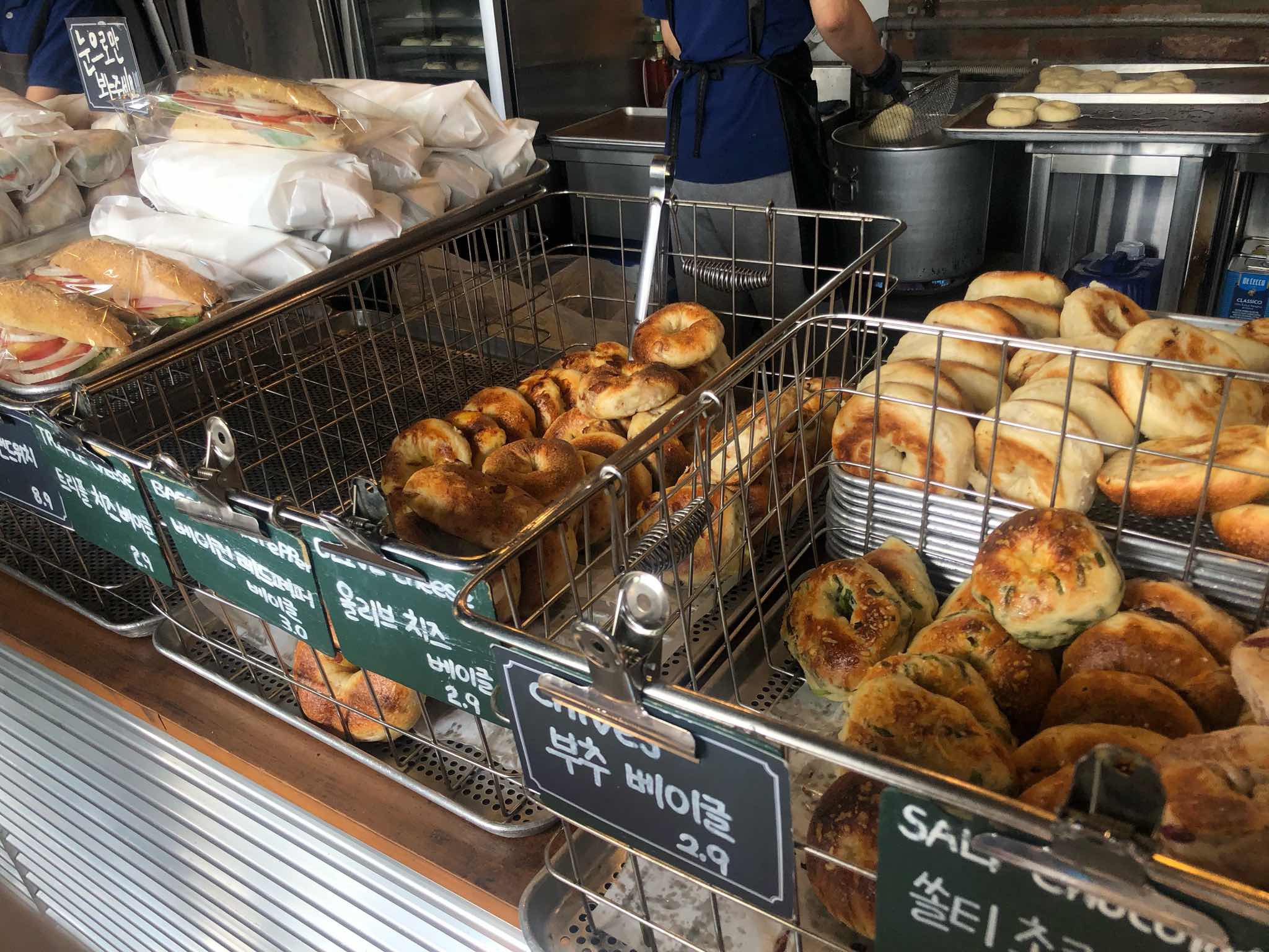 1. **클래식 베이글**: 기본 베이글에 크림치즈를 발라 먹는 클래식 베이글은 정말 맛있습니다. 바삭하면서도 쫄깃한 베이글과 부드러운 크림치즈가 조화를 이루어 아침식사로 딱입니다.