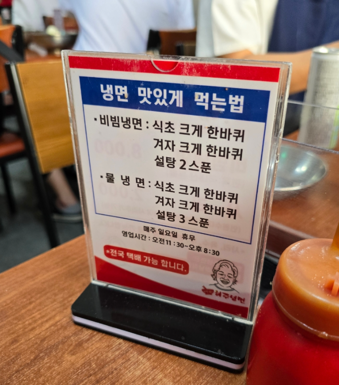 해주냉면의 비빔냉면은 강렬한 매운맛으로 유명합니다. 비빔냉면을 맛있게 먹는 방법으로는 식초와 겨자를 한 바퀴씩 돌려 넣고 설탕을 두 스푼 첨가한 후 섞어주는 것입니다. 이렇게 먹으면 매운 양념의 깊은 맛을 더욱 느낄 수 있습니다. 매운맛을 중화시키기 위해 무김치나 온육수를 함께 곁들이는 것도 좋은 방법입니다. 매운맛이 강렬하지만 중독성 있는 맛으로 많은 사람들이 찾는 인기 메뉴입니다.
