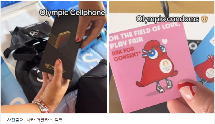 웰컴팩에서 또 하나 주목할 만한 아이템은 올림픽 공식 콘돔입니다. 이번 파리 올림픽에서는 약 30만 개의 콘돔이 선수들에게 제공되었으며, 이는 선수당 약 20개씩 돌아가는 셈입니다. 콘돔 케이스에는 파리올림픽 마스코트 ‘프리주’가 그려져 있고, ‘사랑의 무대에서도 정정당당한 플레이’, ‘동의를 얻으세요’, ‘금메달리스트가 아니어도 착용할 수 있습니다’ 등의 문구가 적혀 있습니다.