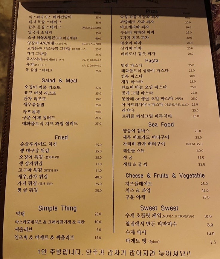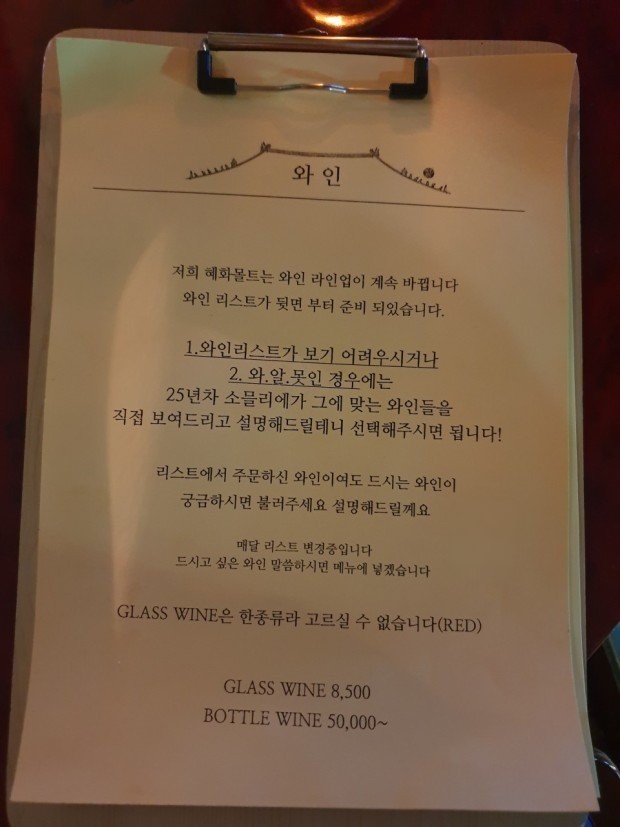 영업시간: 17:00 ~ 1:00 (일요일 휴무 & 월요일 비정기적 휴무)