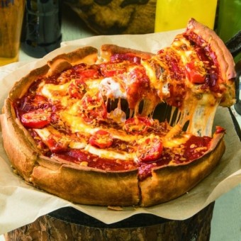 제임스 시카고피자의 대표 메뉴인 페퍼로니 시카고피자는 두툼한 도우와 듬뿍 들어간 모짜렐라 치즈, 짭조름한 페퍼로니가 환상적인 조화를 이루는 피자입니다. 특히 피자를 들어 올릴 때 늘어나는 치즈는 보는 것만으로도 군침이 도는 비주얼을 자랑합니다. 페퍼로니의 짭조름한 맛과 토마토소스의 상큼함, 치즈의 부드러움이 어우러져 한 조각만으로도 큰 만족을 줍니다.