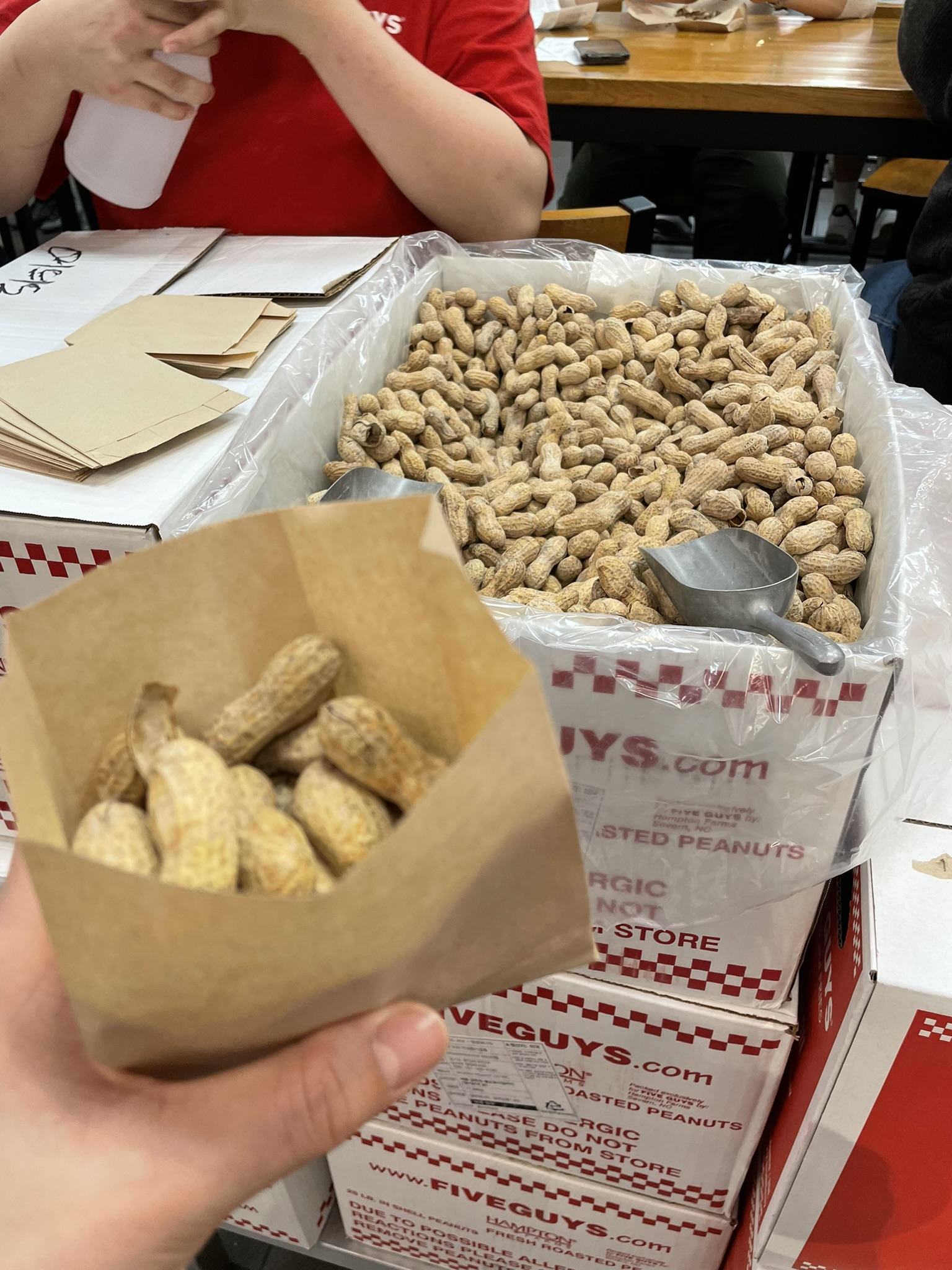 Five Guys 더현대서울점은 넓고 자유로운 분위기로, 누구나 편안하게 식사를 즐길 수 있는 공간을 제공합니다. 깔끔하고 모던한 인테리어와 넓은 좌석 배치는 가족, 친구, 동료들과 함께 방문하기에 최적의 장소입니다. 또한, 매장 곳곳에 비치된 땅콩은 무료로 제공되어, 식사를 기다리는 동안 즐길 수 있는 작은 즐거움을 더해줍니다.